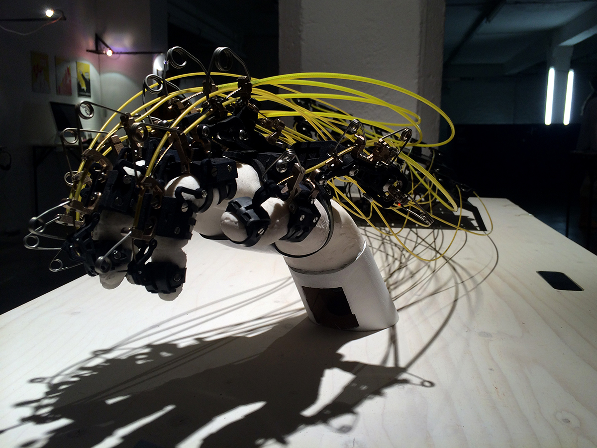 Two years ago Charles Duffy showed me a sketch of a robotic hand explaining his idea for what would be his third year project when the time would arrive. He is now displaying a working prototype at xv show. The learning hand, a robotic hand that mimics the movements of a human hand, has the potential to be used to experiment with muscular experience in neurological tests.