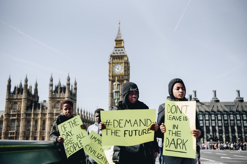 “One of the tracks that we created was a conversation around the history of immigration, particularly with the docks and that area of East London bringing immigrants from all over the world, and looking at the different tensions that happened, from the Irish, the European, Asian, Afro-Caribbean immigrants as they came to settle, and repeatedly how populist politicians have played the immigration card, whether that’s Oswald Mosley, Enoch Powell, or today [Nigel] Farage and Boris [Johnson] with slogans such as: “We want our country back” or Take back control”. In the end, it’s having a conversation with these young people about what those slogans mean, how it made them feel, and how can design challenge that.”