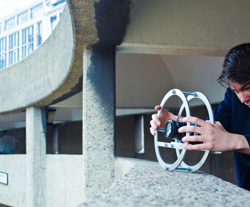 Since the degree show, I have been busy expanding the project; developing its thesis through discussions with architects, creating new project materials and not long ago exhibiting the second ‘phase’ at the London Festival of Architecture (LFA) 2017, which ran from 1 – 30th June. Amongst it all, the development of new camera rigs offered the richest territory for discovery. Admittedly, the rigs I developed for the first phase of the project were very basic, the beginnings of a larger venture. The two new devices look to amplify the interaction between camera and architecture; the first – called the CRB_LSD rig – emerged from a fascination with revolving shots on film and an itch to create one which was a direct result of a surface manipulating a camera. Rolling a camera within a circular cage facilitated this, offering some fantastically disorienting footage. The other – called the SRFC_DP – originated from discussions with Mobile Studio Architects about abstracting the materiality of a building from the wider context of its form and the ‘grand architectural image’ which people often seek when photographing architecture. The exhibition brought about a satisfying resolution in seeing these surface frames – which are roughly 50mm x 30mm – projected at fifty times their original size; somehow activated in a way which eluded me in the editing process.