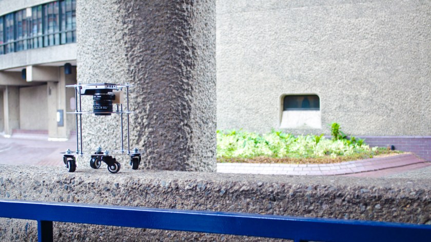 As these devices developed, my ontological understanding of them was evolving, as was my comprehension of the project as a whole. As obvious as it may sound, it took me a while to grasp that Building The Cinematic is an architecture project more than it is a film project and concurrently, whilst these devices are camera rigs, they are primarily architectural interfaces – contributing to an alternative architectural topography through the data they collect. Speaking of data, what came as a complete surprise to me was the incredible sounds these objects tease out through their contact with surfaces. Goethe described architecture as “frozen music.”1 If so, have I created devices of thawing? It’s one of those wonderful moments when the design process offers up something completely unexpected, especially when it proves to be so effective – my use of sound was described by one attendee at the LFA show as “painful”. Never has my sound design had such an effect on someone, so I took that as a compliment – even if it wasn’t intended as such.
