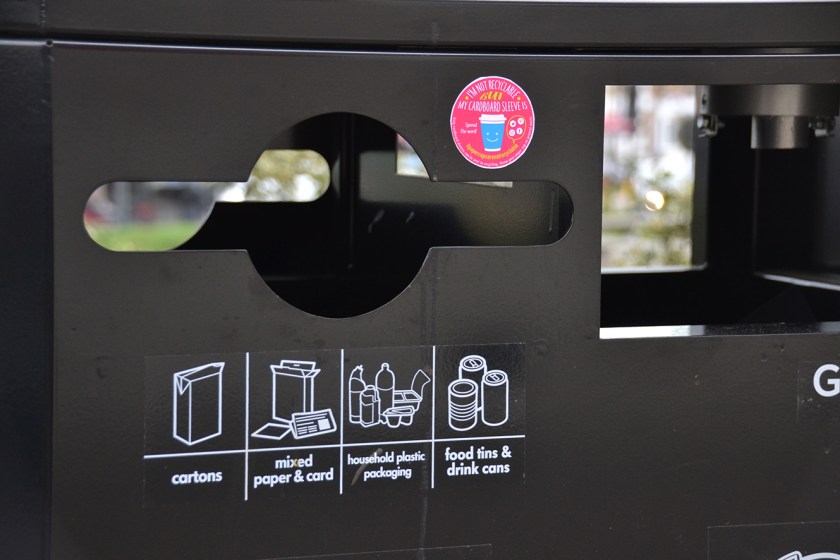 - c) recycle the cardboard sleeves and throw the rest in the general waste (unless there is a specialized bin for paper cups).