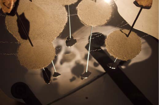 As a whole, the arrangement is a map of the local sites allocated for extra terrestrial mining. The room is a dark, quiet place of reflection on humankind’s use of geological matter for its own advancement, and a contemplation on the future commodification of outer space.