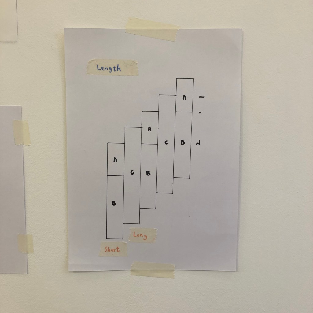 I started to experiment by changing ‘the variable number’ into different lengths, colours, widths, angles, etc… In order to make things clear to myself, I used simple code to document along the way. The coding system and colour combination turned out to be very interesting.