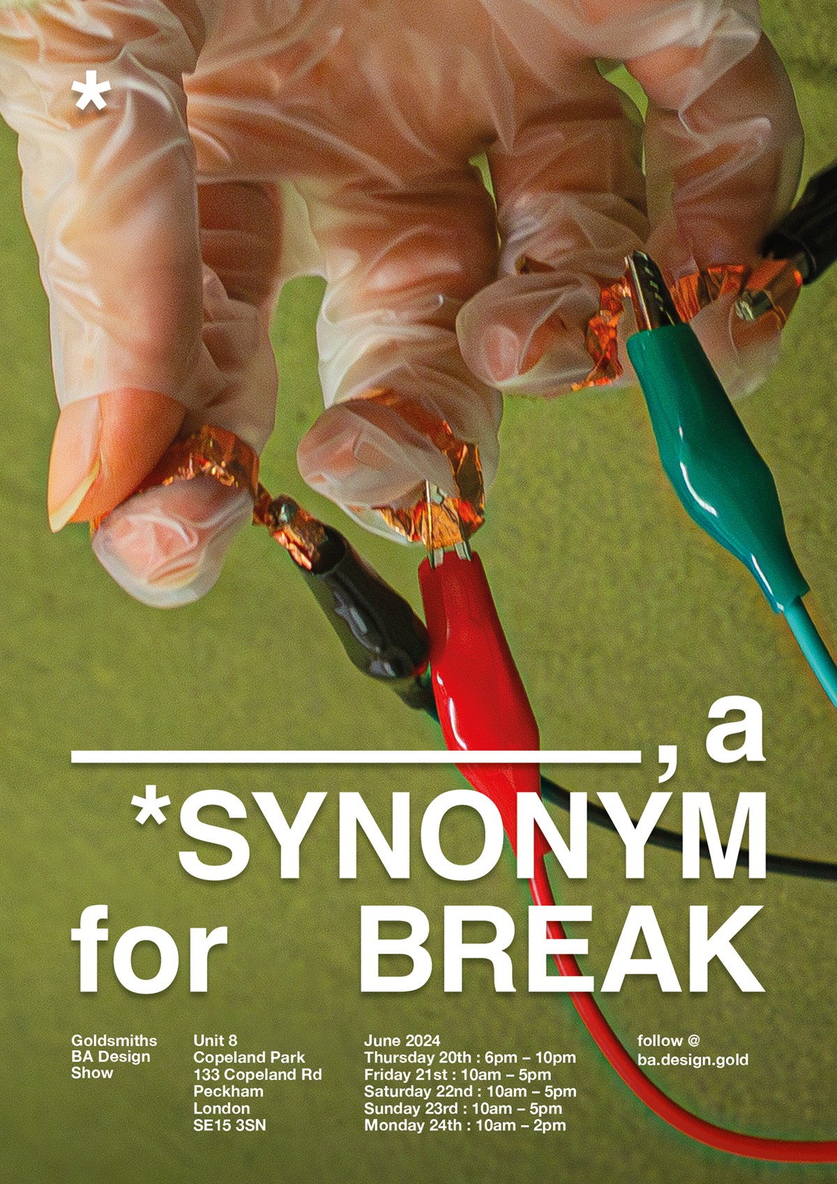 On behalf of the College, the Department of Design and all of our students, we are delighted to invite you to attend the opening night of our graduating cohort’s public exhibition entitled “A Synonym for Break”, taking place on the 20th of June. Thereafter, the show will be open to the public for 4 days between the 21st and the 24th of June, with a second celebratory gathering in the evening of the 22nd of June.